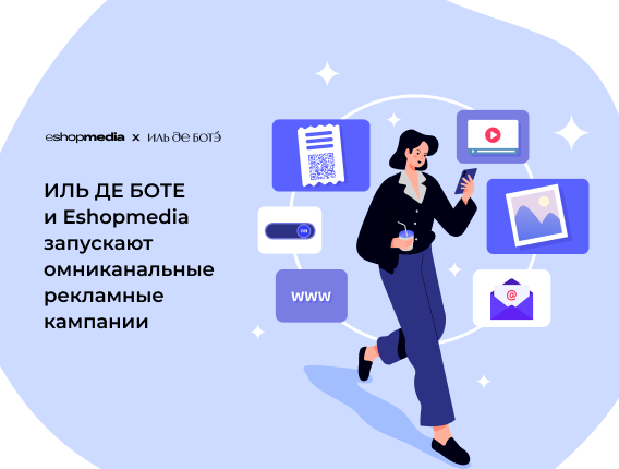 Совместно с Eshopmedia ИЛЬ ДЕ БОТЭ запускает омниканальные рекламные кампании, которые позволяют брендированным сообщениям охватывать аудиторию на всём пути: от первого касания до момента покупки — в офлайне, онлайне и через прямые коммуникации.